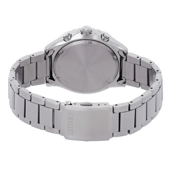 Silver-tone stainless steel case and bracelet. Uni-directional rotating stainless steel with a black top ring bezel. Orange dial with index hour markers. Minute markers around the outer rim. Dial Type: Analog. Luminescent hands and markers. Date display at the 4 o'clock position. Chronograph - three sub-dials displaying: 60 minute, 60 second and 24 hour. Citizen Caliber Eco-Drive H500 eco-drive movement. Scratch resistant mineral crystal. Solid case back. Round case shape, case size: 43 mm, case thickness: 10.7 mm. Fold over clasp with a safety release. Water resistant at 100 meters / 330 feet. Functions: chronograph, date, hour, minute, second, solar-powered. Chrono Sporty-aqua Series. Sport watch style. Watch label: Japan Movt. Citizen Chrono Sporty-Aqua Chronograph Orange Dial Men's Watch AT2560-84X.