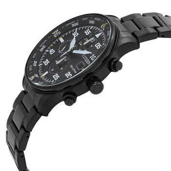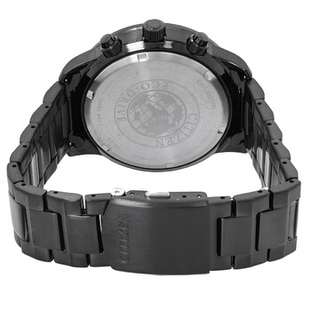 Black stainless steel case and bracelet. Black bezel. Black dial with luminous white hands and Arabic numeral hour markers. Tachymeter on the outer rim. Dial Type: Analog. Luminescent hands and markers. Date display at the 3 o'clock position. Chronograph - three sub-dials displaying: 60 second, 60 minute and 24 hour. Citizen Caliber Eco-Drive B612 eco-drive movement. Scratch resistant mineral crystal. Pull / push crown. Solid case back. Round case shape, case size: 44 mm, case thickness: 13 mm. Band width: 22 mm. Deployment with push button release clasp. Water resistant at 100 meters / 330 feet. Functions: chronograph, date, hour, minute, second, solar-powered. Sport watch style. Watch label: Japan Movt. Citizen Chronograph Black Dial Men's Watch CA0695-84E.