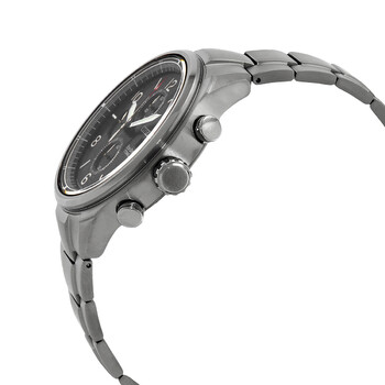 Silver-tone super titanium case and bracelet. Fixed silver-tone super titanium bezel. Black dial with silver-tone hands and alternating Arabic numeral and index hour markers. Minute markers around the outer rim. Dial Type: Analog. Luminescent hands and markers. Date display at the 3 o'clock position. Chronograph - three sub-dials displaying: 60 second, 60 minute and 24 hour. Citizen Caliber Eco-Drive B612 eco-drive movement. Scratch resistant sapphire crystal. Solid case back. Round case shape, case size: 44 mm, case thickness: 11.6 mm. Fold over clasp with a safety release. Water resistant at 100 meters / 330 feet. Functions: chronograph, date, hour, minute, second, solar-powered. Sport watch style. Watch label: Japan Movt. Citizen Chronograph Eco-Drive Black Dial Men's Watch CA0810-88E.