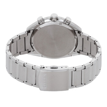 Silver-tone stainless steel case and bracelet. Fixed silver-tone stainless steel bezel. Blue dial with silver-tone hands and index hour markers. Minute markers around the outer rim. Dial Type: Analog. Luminescent hands and markers. Date display between 4 and 5 o'clock position. Chronograph - three sub-dials displaying: 60 second, 60 minute and 24 hour. Citizen Caliber B620 eco-drive movement. Scratch resistant mineral crystal. Pull / push crown. Solid case back. Round case shape, case size: 44 mm. Fold over clasp with a safety release. Water resistant at 100 meters / 330 feet. Functions: chronograph, date, hour, minute, second. Sport watch style. Watch label: Japan Movt. Citizen Chronograph Eco-Drive Blue Dial Men's Watch CA4288-86L.