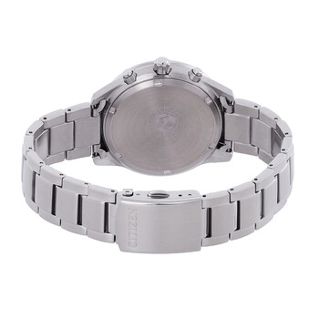 Silver-tone stainless steel case and bracelet. Silver-tone stainless steel bezel. Silver dial with silver-tone hands and index hour markers. Minute markers around the outer rim. Dial Type: Analog. Luminescent hands and markers. Date display at the 3 o'clock position. Chronograph - two sub-dials displaying: 60 second and 60 minute. Citizen Caliber B642 quartz movement. Scratch resistant mineral crystal. Solid case back. Round case shape, case size: 41 mm, case thickness: 10.9 mm. Band width: 20 mm. Three-fold push type nakadome clasp. Water resistant at 100 meters / 330 feet. Functions: chronograph, hour, minute, second. Dress watch style. Watch label: Japan Movt. Citizen Chronograph Quartz Silver Dial Men's Watch CA7030-97A.