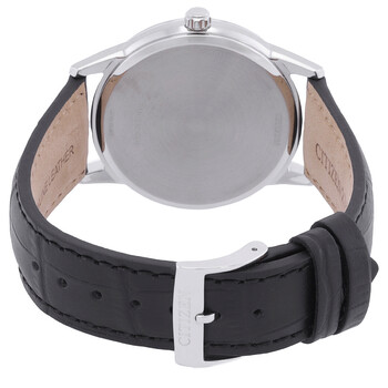 Silver-tone stainless steel case with a black leather strap. Fixed silver-tone stainless steel bezel. Blue dial with silver-tone hands and index-Roman numeral hour markers. Minute markers around the outer rim. Dial Type: Analog. Date display at the 3 o'clock position. Citizen Caliber Eco-Drive J810 eco-drive movement. Scratch resistant mineral crystal. Pull / push crown. Solid case back. Round case shape, case size: 40 mm. Band width: 21 mm. Buckle clasp. Water resistant at 30 meters / 100 feet. Functions: date, hour, minute, second, solar-powered. Classic Series. Sport watch style. Watch label: Japan Movt. Citizen Classic Eco-Drive Blue Dial Men's Watch AW1780-09L.