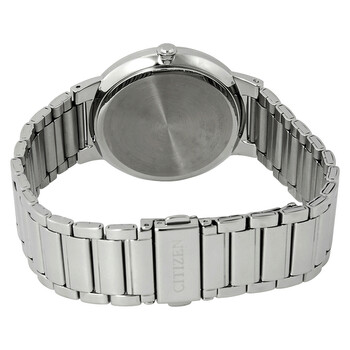 Stainless steel case with a stainless steel bracelet. Fixed stainless steel bezel. Black dial with silver-tone hands. Index markers appear at the 3, 6, 9 and 12 o'clock positions. Dial Type: Analog. Date display above the 6 o'clock position. Quartz movement. Scratch resistant mineral crystal. Pull / push crown. Solid case back. Round case shape. Case size: 41 mm. Case thickness: 8 mm. Band width: 20 mm. Fold over clasp with a push button release. Water resistant at 50 meters / 165 feet. Functions: date, hour, minute, second. Corso Series. Casual watch style. Watch label: Japan Movt. Citizen Corso Black Dial Quartz Men's Watch BI5010-59E.