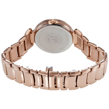 Rose gold-tone stainless steel case and bracelet. Fixed rose gold-tone bezel. Mother of pearl dial with rose gold-tone hands and crystals hour markers. Dial Type: Analog. Citizen Caliber E031 eco-drive movement. Scratch resistant sapphire crystal. Pull / push crown. Solid case back. Round case shape, case size: 31 mm, case thickness: 8 mm. Deployment clasp. Water resistant at 50 meters / 165 feet. Functions: hour, minute, second. Citizen Crystal Ladies Watch EM0853-81Y.