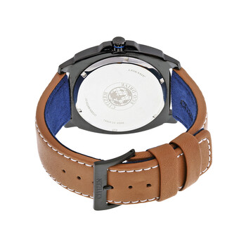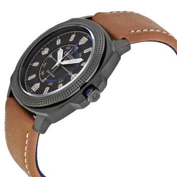 Black ion-plated stainless steel case with a khaki leather strap. Fixed black ion-plated bezel. Black dial with silver-tone hands and index hour markers. Minute markers around the outer rim. Dial Type: Analog. Luminescent hands and markers. Eco-drive movement. Scratch resistant mineral crystal. Pull / push crown. Solid case back. Case diameter: 48 mm. Case thickness: 11 mm. Round case shape. Band width: 25 mm. Band length: 9 inches. Tang clasp. Water resistant at 100 meters / 330 feet. Functions: hour, minute, second. Additional Info: suitable for snorkeling, as well as swimming, but not diving. Casual watch style. Item Variations: BJ6475 00E, BJ6475.00E, BJ647500E. Citizen CTO Eco-Drive Black Dial Khaki Leather Strap Men's Watch BJ6475-00E.