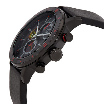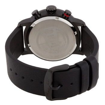 Black stainless steel case with a black leather strap. Black stainless steel bezel. Black dial with silver-tone hands and index hour markers. Minute markers around the outer rim. Dial Type: Analog. Luminescent hands and markers. Date display at the 3 o'clock position. Chronograph - three sub-dials displaying: 60 second, 60 minute and 24 hour. Citizen Caliber Eco-Drive B612 eco-drive movement. Scratch resistant mineral crystal. Solid case back. Round case shape, case size: 44 mm. Band width: 22 mm. Buckle clasp. Water resistant at 100 meters / 330 feet. Functions: chronograph, date, hour, minute, second, solar-powered. Darth Vader Series. Sport watch style. Watch label: Japan Movt. Citizen Darth Vader Chronograph Black Dial Men's Watch CA0769-04W.