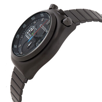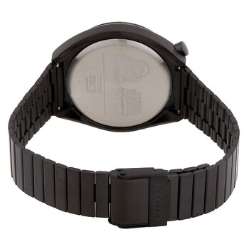 Black IP stainless steel case and bracelet. Fixed black IP stainless steel bezel. Black dial with black hands and index hour markers. Arabic numeral minute markers (at 5 minute intervals). Dial Type: Analog. Luminescent hands and markers. Date display between 4 and 5 o'clock position. Citizen Caliber 0510 quartz movement. Scratch resistant mineral crystal. Pull / push crown. Solid case back. Round case shape, case size: 38 mm. Band width: 18 mm. Sliding clasp. Water resistant at 50 meters / 165 feet. Functions: chronograph, date, hour, minute, second. Darth Vader Star Wars Series. Sport watch style. Watch label: Japan Movt. Citizen Darth Vader Star Wars Chronograph Quartz Black Dial Men's Watch AN3669-52E.