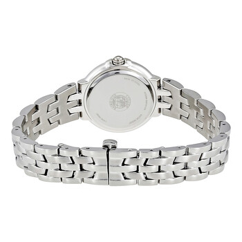 Stainless steel case with a stainless steel bracelet. Fixed stainless steel bezel set with diamonds. White dial with silver-tone hands and index hour markers. Roman numerals mark the 6 and 12 o'clock positions. Dial Type: Analog. Citizen Caliber Eco-Drive E031 eco-drive movement. Scratch resistant mineral crystal. Pull / push crown. Solid case back. Round case shape,. Case size: 28 mm. Case thickness: 8.5 mm. Band width: 14 mm. Deployment clasp with a push button release. Water resistant at 30 meters / 100 feet. Functions: hour, minute, second. Additional Info: in general, withstands splashes or brief immersion in water, but not suitable for swimming or bathing. Casual watch style. Watch label: Japan Movt. Citizen Diamond White Dial Ladies Watch EM0440-57A.