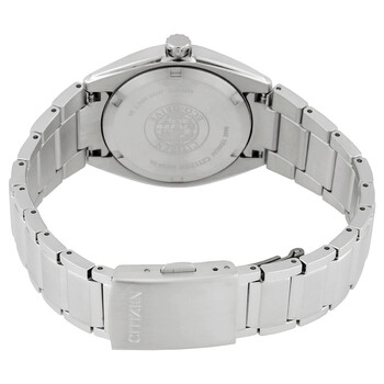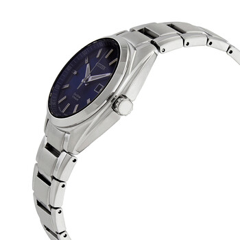 Grey (super) titanium case and bracelet. Fixed grey (super) titanium bezel. Blue dial with luminous silver-tone hands and index hour markers. Arabic numeral minute markers (at 5 minute intervals). Minute markers around the outer rim. Dial Type: Analog. Luminescent hands. Date display at the 3 o'clock position. Citizen caliber E011 eco-drive movement with a 180-day power reserve. Scratch resistant sapphire crystal. Pull / push crown. Solid case back. Round case shape. Case size: 34 mm. Case thickness: 9 mm. Band width: 16 mm. Fold over clasp with a push button release. Water resistant at 100 meters / 330 feet. Functions: date, hour, minute, second. Eco Drive Series. Casual watch style. Watch label: Japan Movt. Citizen Eco Drive Blue Dial Titanium Ladies Watch EW2210-53L.
