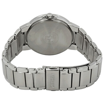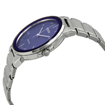 Stainless steel case with a stainless steel bracelet. Fixed stainless steel bezel. Blue dial with luminous silver-tone hands and index hour markers. Minute markers. Dial Type: Analog. Luminescent hands and markers. Citizen caliber Eco-Drive E031 eco-drive movement. Scratch resistant mineral crystal. Pull / push crown. Solid case back. Round case shape. Case size: 41 mm. Case thickness: 8 mm. Band width: 20 mm. Fold over clasp. Water resistant at 30 meters / 100 feet. Functions: hour, minute, second, solar-powered. Additional Info: powered by light with eco-drive. Casual watch style. Watch label: Japan Movt. Citizen Eco-Drive Axiom Blue Dial Men's Watch BJ6510-51L.