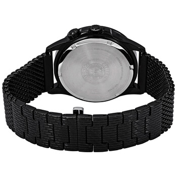 Black ion-plated stainless steel case with a black stainless steel mesh bracelet. Fixed black ion-plated bezel. Black dial with silver-tone hands and index hour markers. Minute markers. World time cities. 24 hour markers around the outer rim. Dial Type: Analog. Luminescent hands. Three multi-function sub-dials displaying: date, day of the week and 24 hour. Citizen caliber Eco-Drive 8729 eco-drive movement. Scratch resistant mineral crystal. Screw down crown. Solid case back. Round case shape. Case size: 44 mm. Case thickness: 13 mm. Band width: 23 mm. Band length: 8 inches. Deployment clasp with a push button release. Water resistant at 100 meters / 330 feet. Functions: date, day, GMT, second time zone, hour, minute, second, solar-powered. Eco-drive Series. Casual watch style. Watch label: Japan Movt. Citizen Eco-Drive Black Dial Men's Watch BU2025-76E.