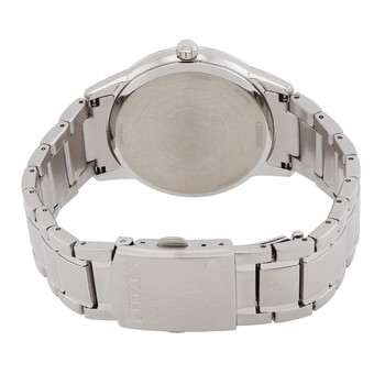 Silver-tone stainless steel case and bracelet. Fixed silver-tone stainless steel bezel. Blue dial with silver-tone hands and index-Roman numeral hour markers. Minute scale around the inner rim. Dial Type: Analog. Date display at the 3 o'clock position. Citizen Caliber J810 eco-drive movement. Scratch resistant mineral crystal. Solid case back. Round case shape, case size: 40 mm, case thickness: 9 mm. Fold over clasp with a safety release. Water resistant at 30 meters / 100 feet. Functions: hour, minute, second. Eco-drive Series. Sport watch style. Watch label: Japan Movt. Citizen Eco-Drive Blue Dial Men's Watch AW1780-84L.