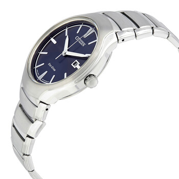 Stainless steel case with a stainless steel bracelet. Fixed stainless steel bezel. Blue dial with luminous silver-tone hands and index hour markers. Dial Type: Analog. Luminescent hands and markers. Date display at the 3 o'clock position. Citizen caliber Eco-Drive J810 eco-drive movement. Scratch resistant mineral crystal crystal. Pull / push crown. Solid case back. Round case shape. Case size: 40 mm. Case thickness: 9 mm. Band width: 26 mm. Fold over clasp with a push button release. Water resistant at 50 meters / 165 feet. Functions: date, hour, minute, second. Additional Info: in general, suitable for short periods of recreational swimming, but not diving or snorkeling. Casual watch style. Watch label: Japan Movt. Citizen Eco-Drive Blue Dial Stainless Steel Men's Watch AW1550-50L.