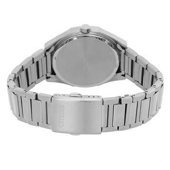 Silver-tone stainless steel case and bracelet. Fixed silver-tone stainless steel bezel. Green dial with silver-tone hands and index hour markers. Minute markers around the outer rim. Dial Type: Analog. Date display between 4 and 5 o'clock position. Chronograph - three sub-dials displaying: 60 second, 60 minute and 24 hour. Citizen Caliber Eco-Drive B620 eco-drive movement. Scratch resistant mineral crystal. Solid case back. Octogonal case shape, case size: 41 mm. Band width: 22 mm. Fold over clasp with a safety release. Water resistant at 100 meters / 330 feet. Functions: chronograph, date, hour, minute, second, solar-powered. Sport watch style. Watch label: Japan Movt. Citizen Eco-Drive Chronograph Green Dial Men's Watch CA4590-81X.