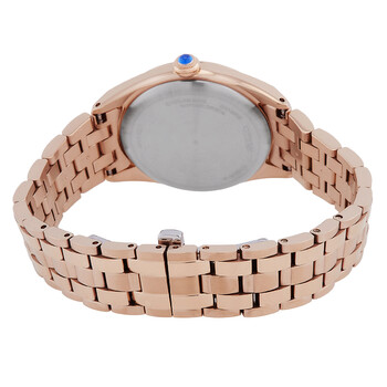 Rose gold-tone stainless steel case and bracelet. Fixed rose gold-tone stainless steel bezel. Light green dial with rose gold-tone hands and index-Roman numeral hour markers. Minute markers around the outer rim. Dial Type: Analog. Citizen Caliber Eco-Drive E031 eco-drive movement. Scratch resistant sapphire crystal. Pull / push crown. Solid case back. Round case shape, case size: 26 mm, case thickness: 8.1 mm. Deployment with push button release clasp. Water resistant at 50 meters / 165 feet. Functions: hour, minute, second, solar-powered. Citizen L Series. Casual watch style. Watch label: Japan Movt. Citizen Eco-Drive Citizen L Ladies Watch EM1143-81X.