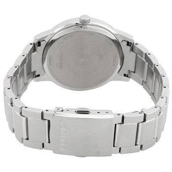 Silver-tone stainless steel case and bracelet. Fixed silver-tone stainless steel bezel. Blue dial with silver-tone hands and index-Roman numeral hour markers. Roman numeral marker appears at the 6 and 12 o'clock positions. Minute markers around the outer rim. Dial Type: Analog. Luminescent hands. Date display at the 3 o'clock position. Citizen Caliber Eco-Drive E111 eco-drive movement. Scratch resistant sapphire crystal. Pull / push crown. Solid case back. Round case shape, case size: 40 mm, case thickness: 8.2 mm. Fold over clasp with a safety release. Water resistant at 50 meters / 165 feet. Functions: date, hour, minute, second, solar-powered. Pair Series. Casual watch style. Watch label: Japan Movt. Citizen Pair Blue Dial Men's Watch BM6978-77L.