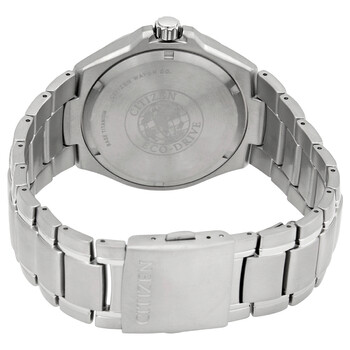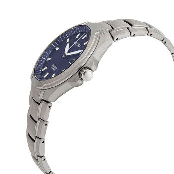 Grey titanium case with a grey titanium bracelet. Fixed grey titanium bezel. Blue dial with luminous silver-tone hands and index hour markers. Minute markers around the outer rim. Dial Type: Analog. Luminescent hands and markers. Date display at the 3 o'clock position. Citizen caliber Eco-Drive E111 eco-drive movement. Scratch resistant sapphire crystal. Solid case back. Round case shape. Case size: 43 mm. Case thickness: 10 mm. Band width: 26 mm. Depoyment clasp. Water resistant at 100 meters / 330 feet. Functions: date, hour, minute, second, solar-powered. Super Titanium Series. Casual watch style. Watch label: Japan Movt. Citizen Eco-Drive Super Titanium Blue Dial Men's Watch BM7430-89L.