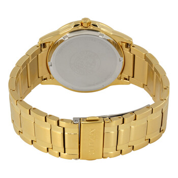 Yellow gold-tone stainless steel case and bracelet. Fixed yellow gold-tone bezel. White dial dial with luminous yellow gold-tone hands and index hour markers. Roman numerals mark the 3, 6, 9 and 12 o'clock positions. Minute markers around the outer rim. Dial Type: Analog. Luminescent hands. Date display at the 3 o'clock position. Citizen caliber Eco-Drive E111 eco-drive movement with a 180-day power reserve. Scratch resistant mineral crystal. Pull / push crown. Solid case back. Case size: 40 mm. Case thickness: 8 mm. Round case shape. Band width: 22 mm. Band length: 8 inches. Deployment clasp with a push button release. Water resistant at 100 meters / 330 feet. Functions: date, hour, minute, second. Casual watch style. Watch label: Japan Movt. Item Variations: BM7262 57A, BM7262.57A, BM726257A. Citizen Eco-drive White Dial Gold-tone Steel Men's Watch BM7262-57A.
