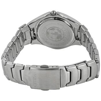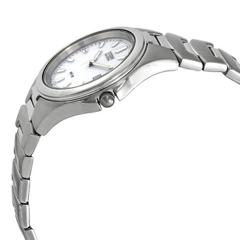 Stainless steel case with a stainless steel bracelet. Fixed stainless steel bezel. White dial with luminous silver-tone hands and index hour markers. Minute markers around the outer rim. Dial Type: Analog. Luminescent hands and markers. Date display at the 3 o'clock position. Eco-drive movement. Scratch resistant mineral crystal. Pull / push crown. Solid case back. Round case shape. Case size: 35 mm. Case thickness: 8 mm. Band width: 16 mm. Deployment clasp with a push button release. Water resistant at 50 meters / 165 feet. Functions: date, hour, minute, second. Casual watch style. Watch label: Japan Movt. Citizen Eco-Drive White Dial Stainless Steel 35mm Watch BM0530-58A.