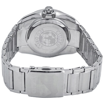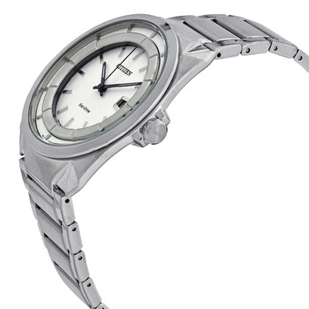 Stainless steel case with a stainless steel bracelet. Fixed stainless steel bezel. White dial with black hands and index hour markers. Dial Type: Analog. Date display at the 3 o'clock position. Citizen caliber Eco-Drive J810 eco-drive movement. Scratch resistant mineral crystal. Pull / push crown. Solid case back. Round case shape. Case size: 43 mm. Case thickness: 10 mm. Band width: 22 mm. Fold over clasp with a safety release. Water resistant at 50 meters / 165 feet. Functions: date, hour, minute, second, solar-powered. Casual watch style. Watch label: Japan Movt. Citizen Eco-Drive White Dial Stainless Steel Men's Watch AW1010-57B.