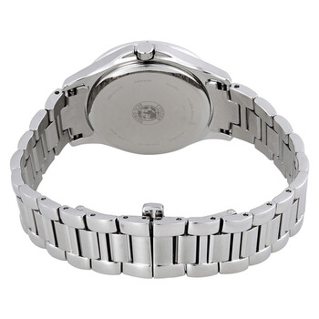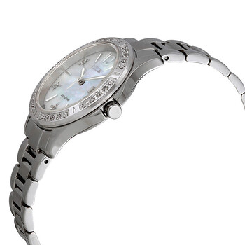 Stainless steel case with a stainless steel bracelet. Fixed stainless steel bezel set with crystals. White mother of pearl dial with luminous silver-tone hands and alternating crystal and index hour markers. An Arabic numeral appears at the 12 o'clock position. Dial Type: Analog. Luminescent hands. Date display at the 3 o'clock position. Citizen caliber Eco-Drive E013 eco-drive movement. Scratch resistant sapphire crystal. Pull / push crown. Solid case back. Round case shape. Case size: 32 mm. Case thickness: 9 mm. Band width: 16 mm. Deployment clasp. Water resistant at 100 meters / 330 feet. Functions: date, hour, minute, second, solar-powered. Additional Info: eco-drive technology uses natural and artificial light for power, so you never need to change or purchase batteries. Dress watch style. Watch label: Japan Movt. Citizen Elektra Diamond White Mother of Pearl Dial Ladies Watch EW2510-50D.