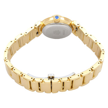Gold-tone stainless steel case with a stainless steel bracelet. Fixed gold-tone stainless steel bezel. Grey dial with gold-tone hands and index-Arabic numeral hour markers. Dial Type: Analog. Citizen Caliber Eco-Drive E031 eco-drive movement. Scratch resistant sapphire crystal. Pull / push crown. Solid case back. Round case shape, case size: 26 mm. Deployment clasp. Water resistant at 50 meters / 165 feet. Functions: hour, minute, second, solar-powered. L Mae Series. Casual watch style. Watch label: Japan Movt. Citizen L Mae Grey Dial Ladies Watch EM1132-88H.