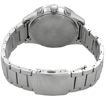 Silver-tone stainless steel case and bracelet. Fixed silver-tone stainless steel bezel. Blue dial with black hands and Arabic numeral hour markers. Minute markers around the outer rim. Dial Type: Analog. Date display at the 3 o'clock position. Chronograph - three sub-dials displaying: 60 second, 60 minute and 24 hour. Citizen Caliber Eco-Drive B612 eco-drive movement. Scratch resistant mineral crystal. Pull / push crown. Solid case back. Round case shape, case size: 42.5mm. Fold over clasp with a safety release. Water resistant at 100 meters / 330 feet. Functions: chronograph, date, hour, minute, second, solar-powered. Limited Edition Series. Sport watch style. Watch label: Japan Movt. Citizen Limited Edition Chronograph Blue Dial Men's Watch CA0770-72M.