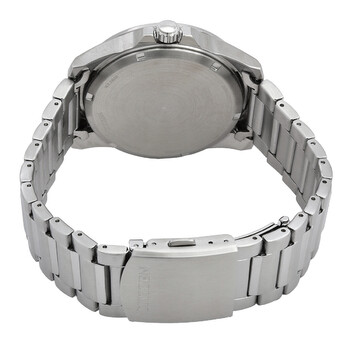 Silver-tone stainless steel case and bracelet. Fixed silver-tone stainless steel bezel with a black aluminum ring. Yellow dial with black hands and index hour markers. Minute markers around the outer rim. Dial Type: Analog. Luminescent hands and markers. Date display at the 3 o'clock position. Citizen Caliber Eco-Drive J810 eco-drive movement. Scratch resistant mineral crystal. Solid case back. Round case shape, case size: 41.5 mm, case thickness: 11.1 mm. Fold over clasp with a safety release. Water resistant at 100 meters / 330 feet. Functions: date, hour, minute, second, solar-powered. Marine 1810 Series. Sport watch style. Watch label: Japan Movt. Citizen Marine 1810 Eco-Drive Yellow Dial Men's Watch AW1816-89X.