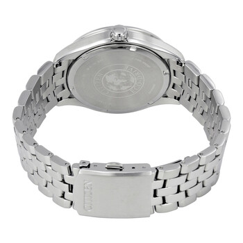 Stainless steel case with a stainless steel bracelet. Fixed stainless steel bezel. Blue dial with luminous silver-tone hands and index hour markers. Minute markers around the outer rim. Dial Type: Analog. Luminescent hands and markers. Date display at the 3 o'clock position. Eco-drive movement. Scratch resistant sapphire crystal. Pull / push crown. Solid case back. Case diameter: 41 mm. Case thickness: 10 mm. Round case shape. Band width: 21 mm. Band length: 8 inches. Fold over clasp with a safety release. Water resistant at 100 meters / 330 feet. Functions: date, hour, minute, second. Dress watch style. Watch label: Japan Movt. Item Variations: BM7251 53L, BM7251.53L, BM725153L. Citizen Men's Bracelet Blue Dial Watch BM7251-53L.