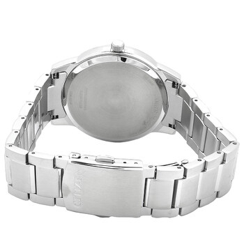 Silver-tone stainless steel case and bracelet. Fixed silver-tone stainless steel bezel. Black dial with silver-tone hands and index-Roman numeral hour markers. Roman numeral marker appears at the 6 and 12 o'clock positions. Minute markers around the outer rim. Dial Type: Analog. Luminescent hands. Date display at the 3 o'clock position. Citizen Caliber Eco-Drive E111 eco-drive movement. Scratch resistant sapphire crystal. Pull / push crown. Solid case back. Round case shape, case size: 40 mm, case thickness: 8.2 mm. Fold over clasp with a safety release. Water resistant at 50 meters / 165 feet. Functions: date, hour, minute, second, solar-powered. Pair Series. Casual watch style. Watch label: Japan Movt. Citizen Pair Eco-Drive Black Dial Men's Watch BM6978-77E.