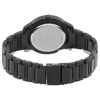Black IP stainless steel case and bracelet. Fixed black IP stainless steel bezel. Black dial with rose gold-tone hands and index hour markers. Minute markers around the outer rim. Dial Type: Analog. Date display at the 3 o'clock position. Citizen Caliber Eco-Drive E111 eco-drive movement. Scratch resistant sapphire crystal. Pull / push crown. Solid case back. Round case shape, case size: 39.2 mm, case thickness: 9.5 mm. Deployment with push button release clasp. Water resistant at 50 meters / 165 feet. Functions: date, hour, minute, second, solar-powered. Pair Series. Casual watch style. Watch label: Japan Movt. Citizen Pair Eco-Drive Black Dial Men's Watch BM7595-89E.