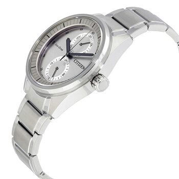 Stainless steel case with a stainless steel bracelet. Fixed stainless steel bezel. Silver dial with luminous grey hands and index hour markers. Arabic numeral minute markers (at 5 minute intervals). Minute markers around the outer rim. Dial Type: Analog. Luminescent hands. Two sub-dials displaying: date and 24 hours. Citizen caliber Eco-Drive 8723 eco-drive movement. Scratch resistant mineral crystal. Pull / push crown. Solid case back. Round case shape. Case size: 43 mm. Case thickness: 12 mm. Band width: 22 mm. Fold over clasp with a push button release. Water resistant at 100 meters / 330 feet. Functions: date, hour, minute, second. Casual watch style. Watch label: Japan Movt. Citizen Paradex Silver Dial Stainless Steel Men's Watch BU3010-51H.