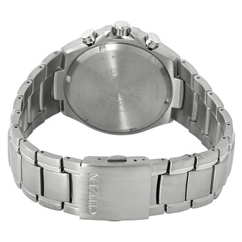 Silver-tone titanium case with a titanium bracelet. Fixed silver-tone titanium bezel. Blue dial with silver-tone hands and index hour markers. Minute markers around the outer rim. Dial Type: Analog. Luminescent hands and markers. Date display at the 3 o'clock position. Chronograph - three sub-dials displaying: 60 second, 60 minute and 24 hour. Citizen Caliber Eco-Drive B612 eco-drive movement. Scratch resistant sapphire crystal. Pull / push crown. Solid case back. Round case shape, case size: 43 mm, case thickness: 11 mm. Band width: 26 mm. Fold over with safety release clasp. Water resistant at 100 meters / 330 feet. Functions: chronograph, date, hour, minute, second, solar-powered. Casual watch style. Watch label: Japan Movt. Citizen Paradigm Eco-Drive Chronograph Blue Dial Men's Watch CA0700-51L.