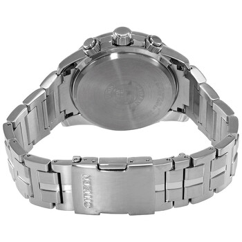 Stainless steel case with a stainless steel acelet. Sainless steel bezel. Blue dial with luminous silver-tone hands and index hour markers. Minute markers around the outer rim. Tachymeter markers around the outer rim. t hands and markers. Date display at the 4 o'clock position. Prpetual calendar. Three sub-dials displaying: 24 hour, day/60 second/power reserve indicator , mode. Citizen cliber E660 eco-drive movement. Scratch resistant sapphire crystal. Screw down crown. Solid case back. Round case shape. Ca size: 43 mm. Fold over clasp with a safety release. Water resistant at 200 meters / 660 feet. Functions: perpetual calendar, atomic timekeeping, radio controlled, chronograph, world time, alarm, date, day, GMT, second time zone, hour, minute, second, power reserve indicator, solar-powered. Sport watch style. Watch label: Japan Movt. Citizen PCAT Radio Controlled Chronograph Blue Dial Watch CB5880-54L.
