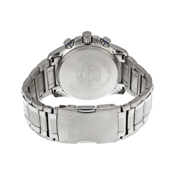Titanium case with a titanium bracelet. Fixed black titanium bezel showing tachymeter markings. Black / silver guilloche dial with luminous silver-tone hands and index hour markers. Tachymeter. Dial Type: Analog. Luminescent hands and markers. Date display at the 4 o'clock position. Three sub-dials displaying: 12/24 hours, time zone and 1 second. Eco-drive movement. Eco-drive E650, atomic timekeeping, radio controlled engine. Scratch resistant sapphire crystal. Pull / push crown. Solid case back. Case diameter: 42 mm. Case thickness: 13 mm. Round case shape. Band width: 24 mm. Band length: 8 inches. Fold over clasp with a hidden double push button release. Water resistant at 200 meters / 660 feet. Functions: chronograph, 1-second chronograph, power reserve indicator, alarm, day-date, 12/24-hour time. Sport watch style. Item Variations: AT4010 50E, AT4010.50E, AT401050E. Citizen Perpetual Chrono A-T Eco-Drive Black Dial Titanium Men's Chronograph Watch AT4010-50E.