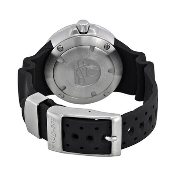 Stainless steel case with a black rubber strap. Unidirectional rotating stainless steel bezel. Black dial with luminous hands and dot hour markers. Minute markers around the outer rim. Dial Type: Analog. Luminescent hands and markers. Date display at the 3 o'clock position. Citizen caliber Eco-Drive B873 eco-drive movement. Scratch resistant mineral crystal. Screw down crown. Solid case back. Round case shape. Case size: 48 mm. Case thickness: 18 mm. Band width: 24 mm, band length: 8 inches. Tang clasp. Water resistant at 300 meters / 1000 feet. Functions: hours, minutes, seconds, date. Additional Info: 180-day power reserve that charges in sunlight or indoors. Dive watch style. Watch label: Made in Japan. Item Variations: BJ8050-08E, BJ805008E, BJ8050, Citizen-BJ8050-08E, Citizen-BJ805008E. Citizen Eco-Drive Professional Diver Men's Watch BJ8050-08E.
