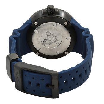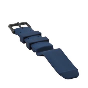 Ip black stainless steel case with a blue synthetic rubber strap. Ip black stainless steel bezel. Black dial with luminous hands and batons hour markers. Minute markers around the outer rim. Dial Type: Analog. Luminescent hands and markers. Date display at the 3 o'clock position. Citizen Caliber B873 eco-drive movement. Scratch resistant mineral crystal. Screw down crown. Solid case back. Round case shape, case size: 48.2 mm, case thickness: 18.5 mm. Buckle clasp. Water resistant at 300 meters / 1000 feet. Functions: date, hour, minute, second. Promaster Series. Sport watch style. Watch label: Japan Movt. Citizen Promaster Black Dial Men's Watch BJ8055-04E.