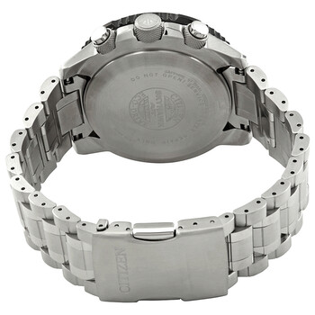 Stainless steel case with a stainless steel bracelet. Fuel scale black stainless steel bezel. Black dial with luminous silver-tone hands and index hour markers. Minute markers. slide rule markings around the outer rim. Dial Type: Analog-digital. Luminescent hands and markers. Perpetual calendar. Chronograph - four sub-dials displaying: charge indicator, dual time, 24 hour and functions. Citizen Caliber Eco-Drive U680 eco-drive movement. Scratch resistant sapphire crystal. Screw down crown. Solid case back. Round case shape, case size: 46 mm. Fold over clasp. Water resistant at 200 meters / 660 feet. Functions: perpetual calendar, chronograph, world time, alarm, GMT, second time zone, hour, minute, second, power reserve indicator, solar-powered. Promaster Skyhawk A-t Series. Sport watch style. Watch label: Japan Movt. Citizen Promaster Skyhawk A-T Eco-Drive Stainless Steel Men's Watch JY8070-54E.