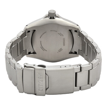 Silver-tone super titanium case and bracelet. Fixed silver-tone super titanium bezel. Gray dial with silver-tone hands and index-Arabic numeral hour markers. Minute markers around the outer rim. Dial Type: Analog. Luminescent hands and markers. Date display at the 3 o'clock position. Citizen Caliber Eco-Drive E168 eco-drive movement. Scratch resistant sapphire crystal. Screw down crown. Solid case back. Round case shape, case size: 41 mm. Fold over clasp with a safety release. Water resistant at 200 meters / 660 feet. Functions: date, hour, minute, second, solar-powered. Promaster Tough Series. Casual watch style. Watch label: Japan Movt. Citizen Promaster Tough Eco-Drive Gray Dial Men's Watch BN0241-59H.