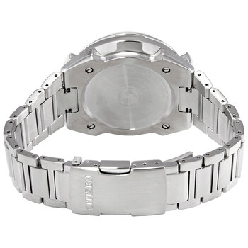 Stainless steel case with a stainless steel bracelet. Fixed stainless steel bezel. Blue dial with luminoussilver-tone hands and index hour markers. Minute markers. Tachymeter markings around the outer rim. Dial Type: Analog. Luminescent hands and markers. Date display between the 1 and 2 o'clock positions. Three black sub-dials displaying: 60 second, 60 minute and 12 hour. Power reserve indicator. Citizen caliber E210 eco-drive movement. Scratch resistant sapphire crystal. Solid case back. Round case shape. Case size: 45 mm. Case thickness: 14 mm. Band width: 23 mm. Fold over clasp with a push button release. Water resistant at 200 meters / 660 feet. Functions: chronograph, tachymeter, date, hour, minute, second. Promaster Tsuno Series. Casual watch style. Citizen Promaster Tsuno Eco-Drive Chronograph Blue Dial Men's Watch AV0070-57L.