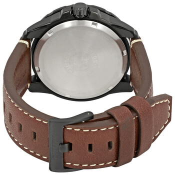 Black ion-plated stainless steel case with a brown leather strap. Bi-directional rotating black ion-plated stainless steel showing compass markings bezel. Black dial with luminous silver-tone hands and index hour markers. Compass. Dial Type: Analog. Luminescent hands and markers. Date display at the 3 o'clock position. Power reserve indicator subdials. Citizen Caliber Eco-Drive J850 eco-drive movement. Scratch resistant mineral crystal. Pull / push crown. Solid case back. Round case shape, case size: 44 mm, case thickness: 12 mm. Band width: 22 mm. Tang clasp. Water resistant at 200 meters / 660 feet. Functions: date, hour, minute, second, compass, power reserve. Prt Series. Sport watch style. Watch label: Japan Movt. Citizen PRT Eco-Drive Black Dial Men's Watch AW7045-09E.