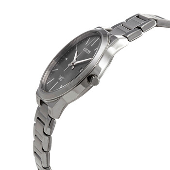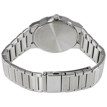 Stainless steel case with a stainless steel bracelet. Fixed stainless steel bezel. Black dial with luminous silver-tone hands and index hour markers. Minute markers around the outer rim. Dial Type: Analog. Luminescent hands. Date display at the 3 o'clock position. Citizen caliber 8700 quartz movement. Scratch resistant mineral crystal. Pull / push crown. Solid case back. Round case shape. Case size: 39 mm. Case thickness: 8 mm. Band width: 20 mm. Fold over clasp with a push button release. Water resistant at 50 meters / 165 feet. Functions: date, hour, minute, second. Casual watch style. Citizen Quartz Black Dial Stainless Steel Men's Watch BI5060-51H.