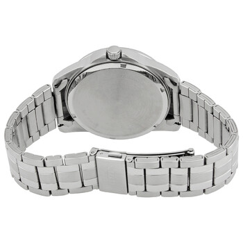 Stainless steel case with a stainless steel bracelet. Fixed stainless steel bezel. Blue dial with luminous silver-tone hands and index hour markers. Arabic numeral minute markers (at 5 minute intervals). Minute markers around the outer rim. Dial Type: Analog. Luminescent hands and markers. Three multi-function sub-dials displaying: day of the week, date and 24 hour. Quartz movement. Scratch resistant mineral crystal. Pull / push crown. Solid case back. Round case shape. Case size: 42 mm. Case thickness: 11 mm. Band width: 22 mm. Fold over clasp with a safety release. Water resistant at 100 meters / 330 feet. Functions: date, day, hour, minute, second. Casual watch style. Watch label: Japan Movt. Citizen Quartz Blue Dial Men's Watch AG8340-58L.