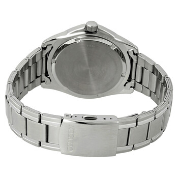 Stainless steel case with a stainless steel bracelet. Fixed stainless steel bezel. Blue dial with luminous silver-tone hands and index hour markers. An Arabic numeral appears atthe 12 o'clock position. Minute markers around the outer rim. Dial Type: Analog. Luminescent hands and markers. Three multi-function sub-dials displaying: date, day of the week and 24 hour. Quartz movement. Scratch resistant mineral crystal. Pull / push crown. Solid case back. Round case shape. Case size: 41 mm. Case thickness: 10 mm. Band width: 18 mm. Fold over clasp with a push button release. Water resistant at 100 meters / 330 feet. Functions: date, day, hour, minute, second, 24 hour. Casual watch style. Watch label: Japan Movt. Citizen Quartz Blue Dial Stainless Steel Men's Watch AG8300-52L.