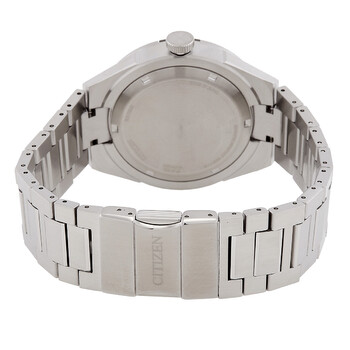 Silver-tone stainless steel case and bracelet. Fixed silver-tone stainless steel bezel. Black dial with silver-tone hands and index hour markers. Minute markers around the outer rim. Dial Type: Analog. Luminescent hands. Date display at the 3 o'clock position. Automatic movement. Scratch resistant sapphire crystal. Solid case back. Round case shape, case size: 40.8 mm. Deployment with push button release clasp. Water resistant at 100 meters / 330 feet. Functions: date, hour, minute, second. Series 8 Series. Casual watch style. Watch label: Japan Movt. Citizen Series 8 Automatic Black Dial Men's Watch NA1004-87E.