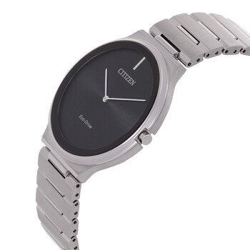 Silver-tone stainless steel case and bracelet. Fixed silver-tone stainless steel bezel. Black dial with silver-tone hands and index hour markers. Dial Type: Analog. Citizen Caliber G872 eco-drive movement. Scratch resistant sapphire crystal. Pull / push crown. Solid case back. Round case shape, case size: 39 mm. Jewelry clasp. Functions: hour, minute, solar-powered. Stiletto Series. Casual watch style. Watch label: Japan Movt. Citizen Stiletto Eco-Drive Black Dial Unisex Watch AR3110-52E.
