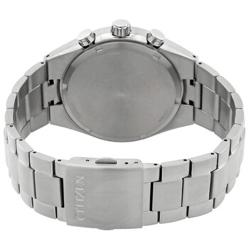 Silver-tone super titanium case and bracelet. Fixed silver-tone super titanium bezel. Red dial with silver-tone hands and index hour markers. Minute markers around the inner rim. Tachymeter around the outer rim. Dial Type: Analog. Date display at the 3 o'clock position. Chronograph - two sub-dials displaying: 60 second and 60 minute. Citizen Caliber B642 eco-drive movement. Scratch resistant sapphire crystal. Pull / push crown. Solid case back. Round case shape, case size: 43 mm, case thickness: 11.5 mm. Band width: 10 mm. Fold over clasp with a safety release. Water resistant at 100 meters / 330 feet. Functions: chronograph, date, hour, minute, small second, solar-powered. Super Titanium Series. Sport watch style. Watch label: Japan Movt. Citizen Super Titanium Chronograph Eco-Drive Red Dial Men's Watch CA7090-87X.