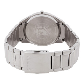 Grey titanium case with a grey titanium bracelet. Fixed grey titanium bezel. Blue dial with silver-tone hands and index hour markers. Dial Type: Analog. Citizen caliber Eco-Drive E031 quartz movement. Scratch resistant sapphire crystal. Pull / push crown. Solid case back. Round case shape. Case size: 41 mm. Case thickness: 7.6 mm. Band width: 20 mm. Fold over clasp with a push button release. Water resistant at 50 meters / 165 feet. Functions: hour, minute, second. Titanium Series. Casual watch style. Watch label: Japan Movt. Citizen Titanium Quartz Blue Dial Titanium Men's Watch BJ6520-82L.