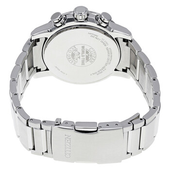 Stainless steel case with a silver-tone stainless steel bracelet. Uni-directional rotating stainless steel bezel. Blue dial with luminous silver-tone hands and index hour markers. Minute markers around the outer rim. Dial Type: Analog. Luminescent hands and markers. Date display at the 3 o'clock position. Three- 12-24 hours, day of the week and power reserve subdials. Citizen Caliber Eco-Drive H820 eco-drive quartz movement. Scratch resistant sapphire crystal. Screw down crown. Solid case back. Case size: 44 mm. Case thickness: 12 mm. Round case shape. Band width: 22 mm. Fold over with safety release clasp. Water resistant at 200 meters / 660 feet. Functions: hour, minute, second, perpetual calendar, power reserve indicator, alarm, 26 time zones. Sport watch style. Citizen World Time Eco-Drive A-T Perpetual Men's Watch AT9070-51L.