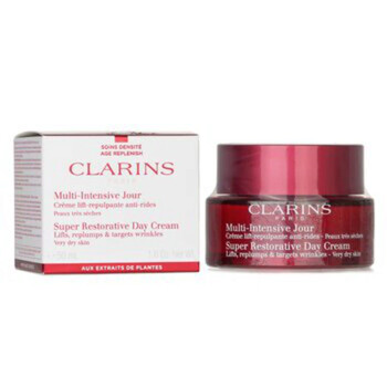 An anti-sagging, anti-wrinkle & lifting day cream for dry skin, ages 50+. Contains a powerful plant-based duo composed of organic harungana extract & organic gorse extract. Helps restore skin's density, creates a lifting effect & fights skin sagging. Reduces the harmful effects of age-related hormonal changes on skin. Enriched with a protective plant-based squalane. Minimizes the appearance of wrinkles & dark spots. Enriched with nourishing shea butter to make skin more supple & comfortable. Infused with a fresh, delicately floral fragrance to deliver a pleasant sensation. Skin becomes smoothed, plumped, denser, brighter, more even, lifted & hydrated. Design house: Clarins. Series: Multi Intensive Jour Super Restorative Day Cream. Gender: Ladies. Category: Skin Care. SubType: Moisturizers. Size: 1.6 oz. Barcode: 3666047064500. Clarins Ladies Multi Intensive Jour Super Restorative Day Cream 1.6 oz Skin Care 3666047064500.